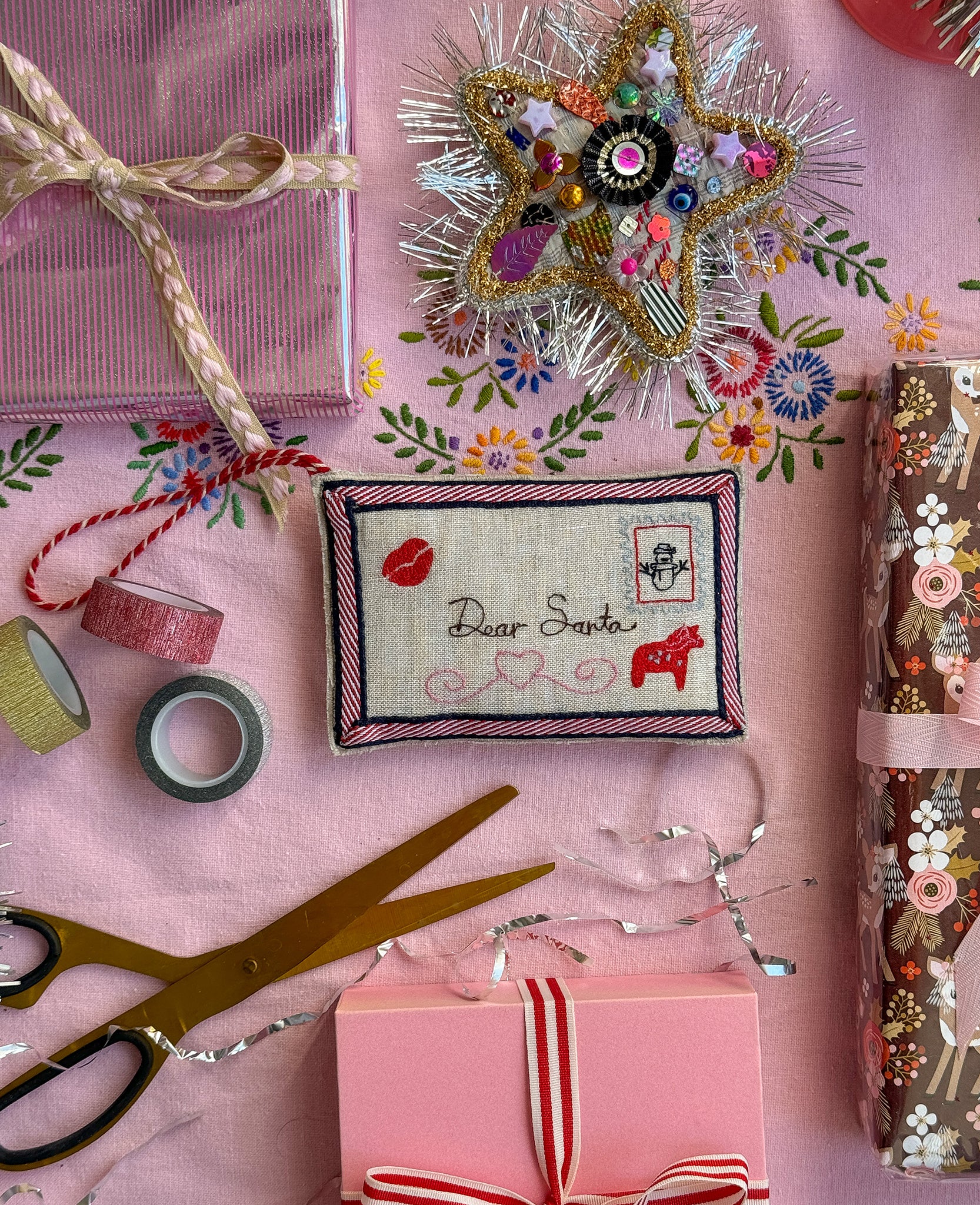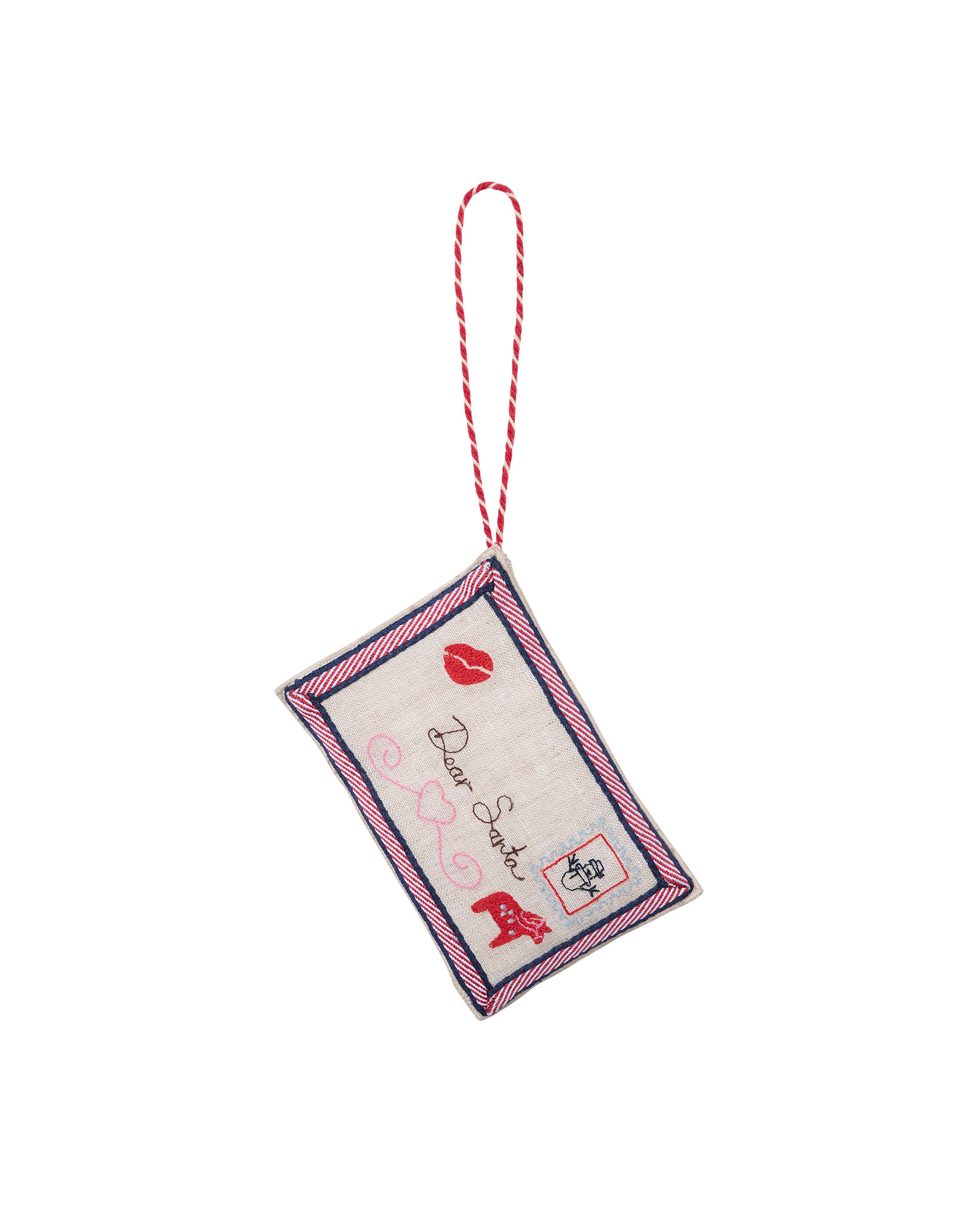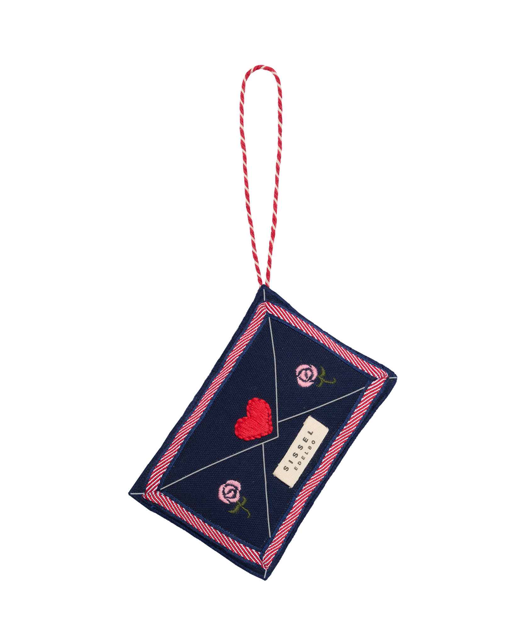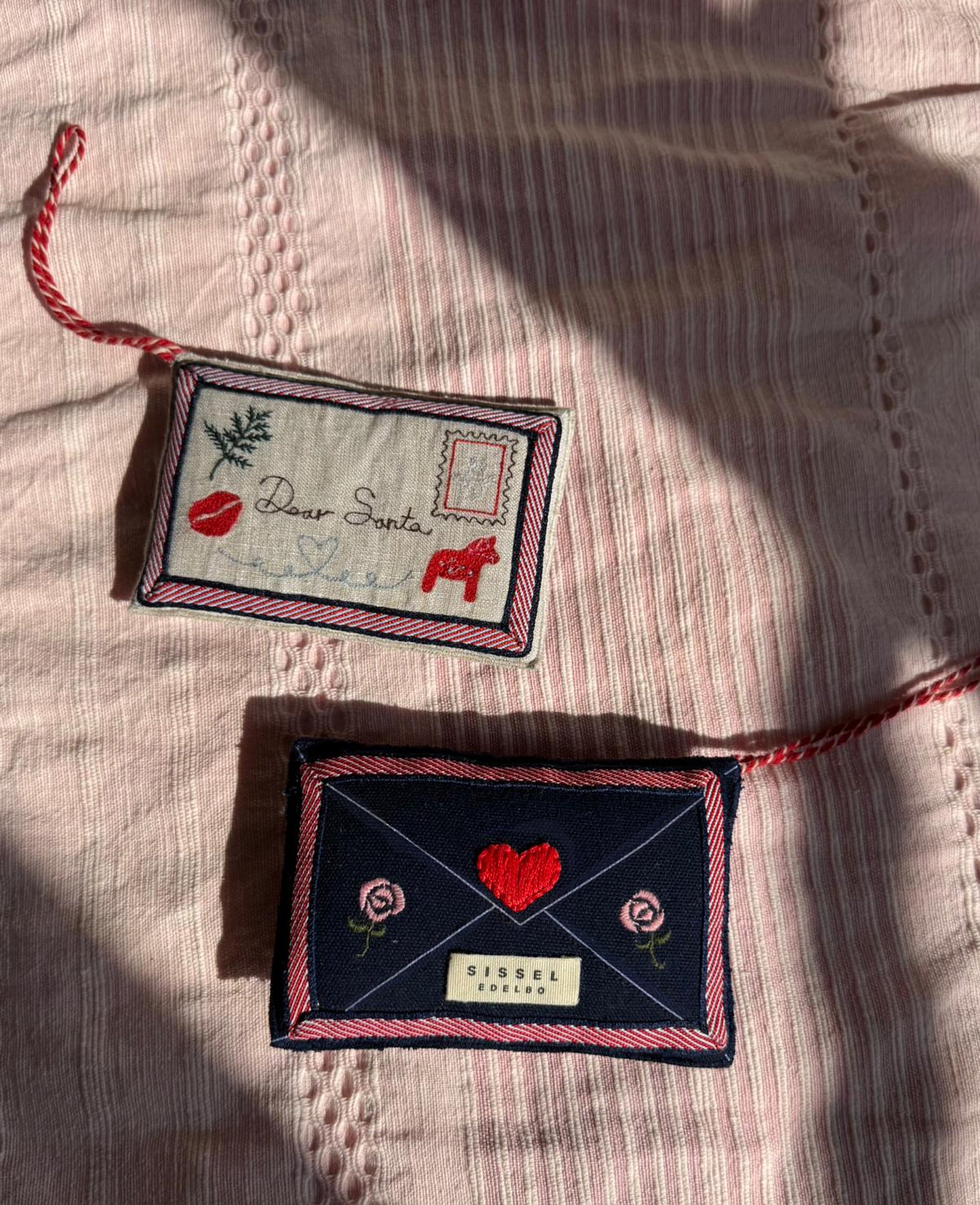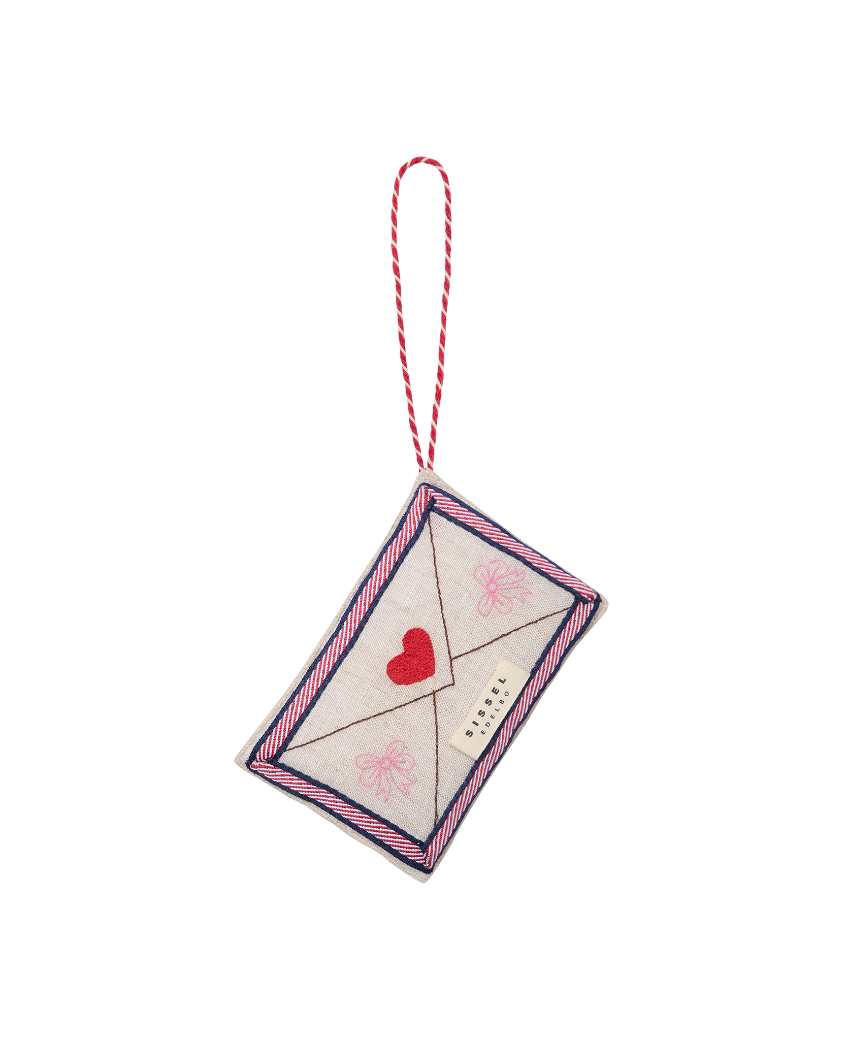 Det smukke julepynt fra Sissel Edelbo kan du glæde dig til at finde frem år efter år. Julebrevet er syet smukt i hør og dekoreret med fine broderier.