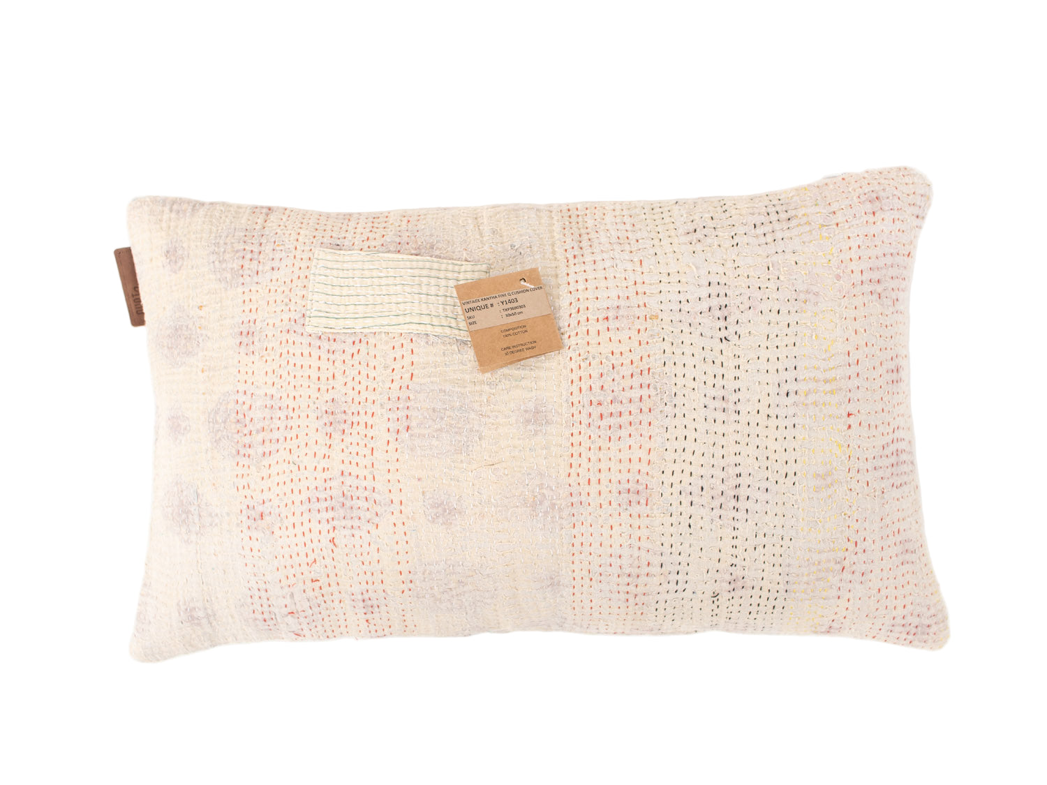 Unika pude syet af vintage sarier i skønne farver, som er syet sammen med masser af håndsyninger. De bløde vintage sarier er syet sammen lag på lag - til en blød pude, hvor sariernes forskellige slitage giver et smukt og helt unikt look, hvor underliggende farver og mønstre 'titter frem'.