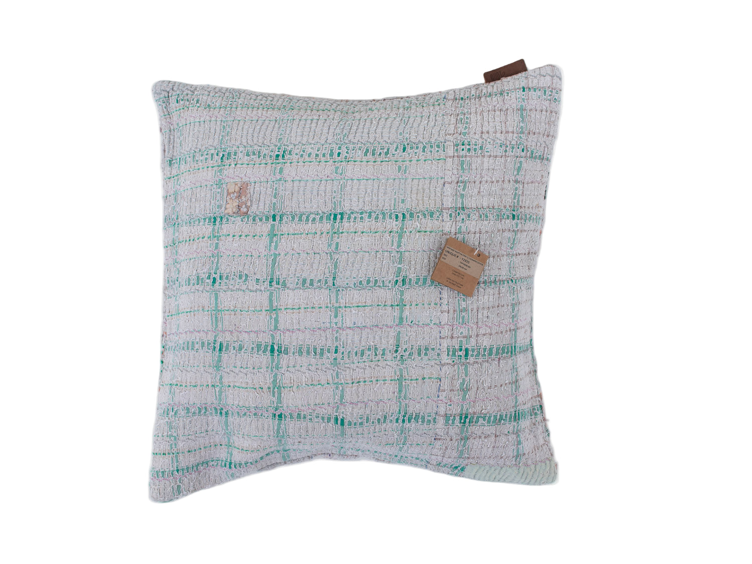 Unika pude syet af vintage sarier i skønne farver, som er syet sammen med masser af håndsyninger. De bløde vintage sarier er syet sammen lag på lag - til en blød pude, hvor sariernes forskellige slitage giver et smukt og helt unikt look, hvor underliggende farver og mønstre 'titter frem'.